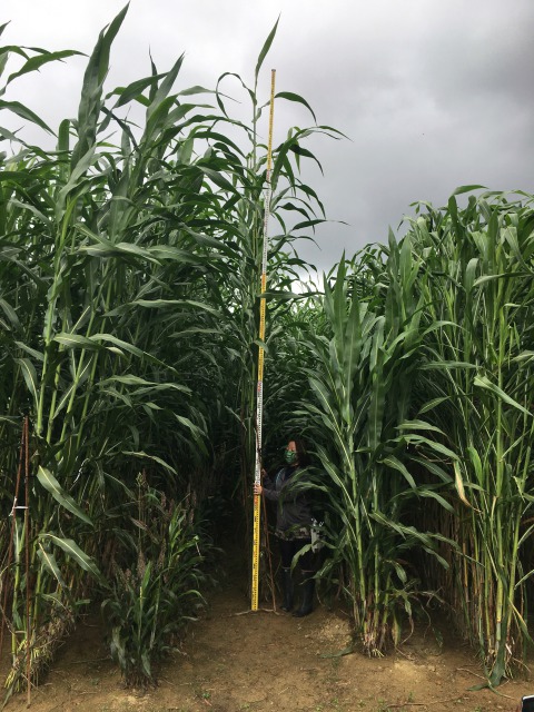 エネルギーとして燃焼する際にCO2を排出するが、ソルガムの生育時にCO2を吸収するため、全体の排出量はマイナスになるという。スギと比較すると、約10倍の1ヘクタールあたり150トンのCO2を吸収できる。