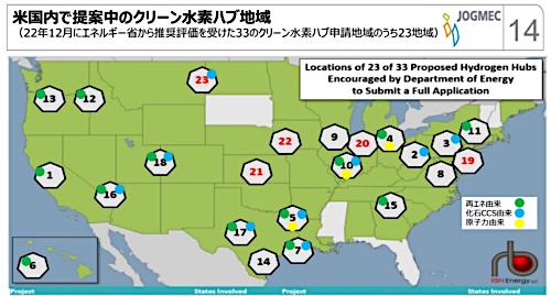 「水素ハブプログラム」は、生産者、消費者、地域の接続インフラのネットワークを構築することで、クリーンな水素の利用を加速させることを目的としています。2022年末の時点で、20地点以上の水素ハブがコンセプトペーパーを提出しています。2023年秋にDOEによる採択が予定されています。
