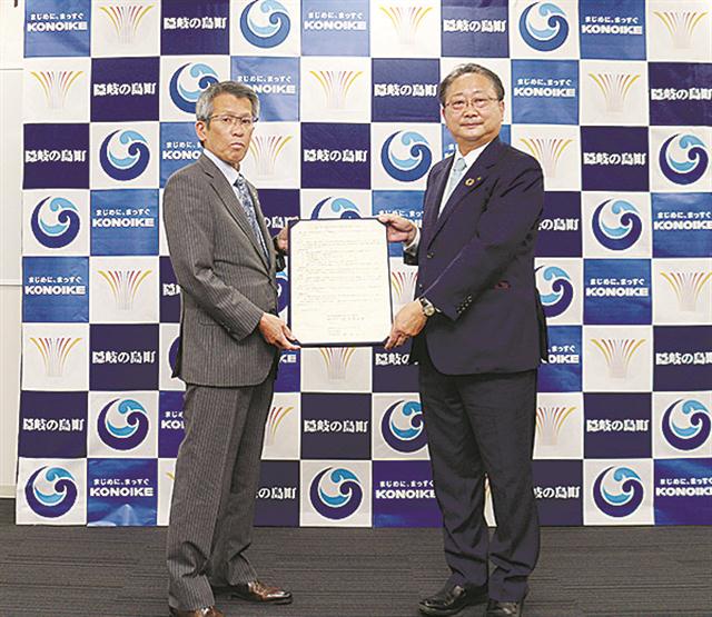 池田高世偉隠岐の島町長は「協定を結ぶことができ感謝している。再生可能エネルギーの取り組みを自治体だけで推進することは難しい。再エネ事業の明確なビジョンを掲げる鴻池組との協定は重要であり、相乗効果をもたらすものと期待している。バイオマス発電事業の具現化をはじめ、さまざまな提案をいただきながら各種施策を展開していきたい」と述べた。