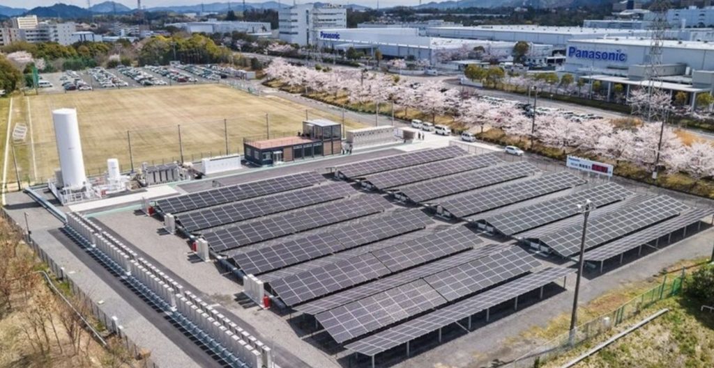 パナソニックは、純水素型燃料電池を活用した実証施設「H2 KIBOU FIELD」を稼働しています。エネルギーの地産地消を目指し、滋賀県草津市にあるパナソニックの燃料電池草津工場の電力を100%、太陽電池と蓄電池、水素燃料電池だけでまかなう新たな取り組み「RE100ソリューション」の一環です。