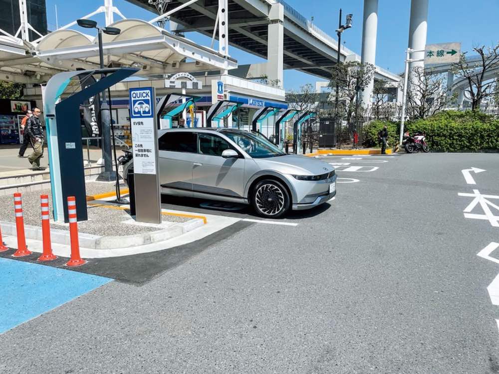 イーモビリティパワーでは、老朽化したものや20~40キロワット時の低出力の充電器を最大90キロワット時で充電口が二つ付いたタイプに置き換えていく。東名高速道路の海老名SA(サービスエリア)や中央自動車道の談合坂SAなどの混雑する場所には、一度に6台充電できる大型のものを設置する見通しだ。北海道や東北など、充電空白地帯の充電器拡充も進める。