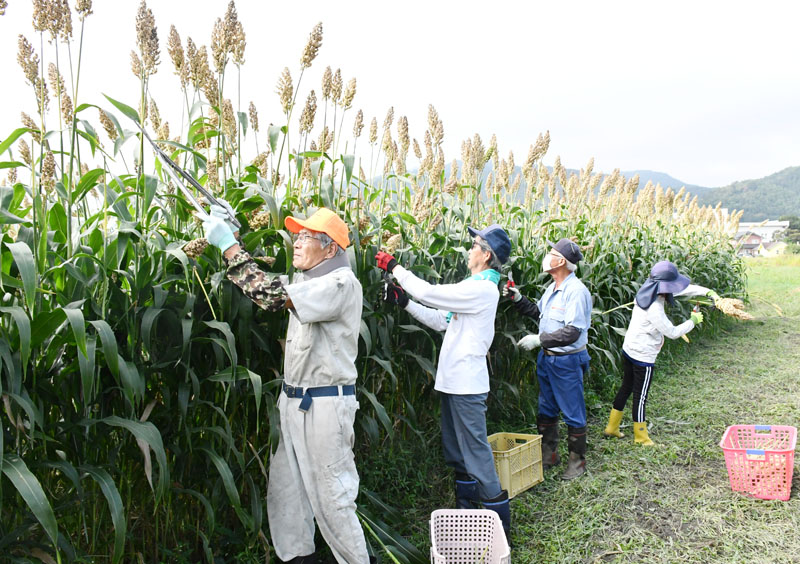 松下さんは「初めてだったが実がなって良かった」と笑顔。「手間が掛からない上に、栽培期間が短く、秋、冬野菜の後にも栽培できるため、遊休地の活用や農家の収入増につながる」とし、「時代に合った食物。後継者を見つけてこの地域にもソルガムの栽培を広めたい」と語った。