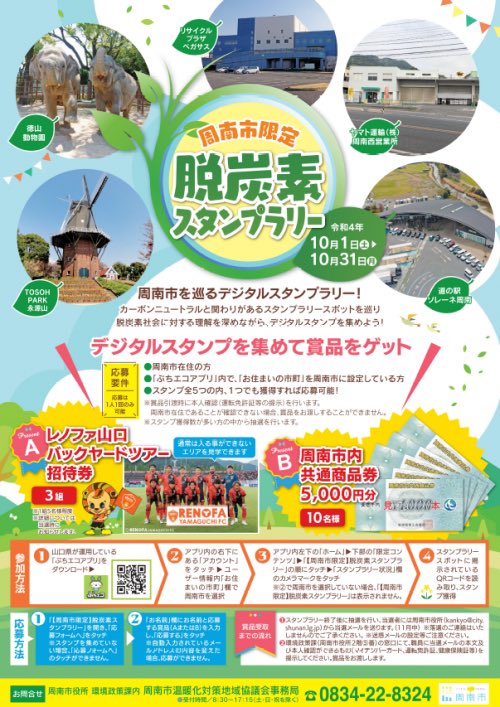 このスタンプラリーは、周南市温暖化対策地域協議会が企画。