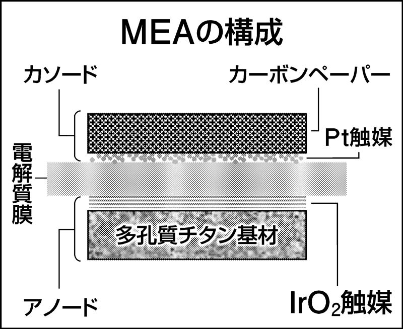 水素は再生可能エネルギーを貯蔵・運搬する手段として注目されており、水を電気分解して水素をつくる電解装置の需要は、脱炭素社会の実現に向けて大きく増える見通し。一方、水電解方式の一つである「固体高分子膜(PEM)水電解」は希少金属のIrを電極用触媒に使うため、Ir使用量の削減が課題になっている。