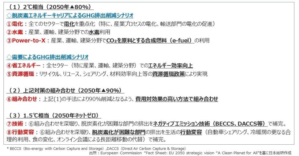 その後、EUは2018年11月に打ち出したカーボンニュートラルに関するビジョン「EU長期戦略-A Clean Planet for All」において、「2050年ネットゼロは技術的に達成可能であり、欧州経済にも好影響を与え得る」という見解を示し、グリーンディールなどのさまざまな施策により、2050年カーボンニュートラル達成に向けた動きを加速させていく。
