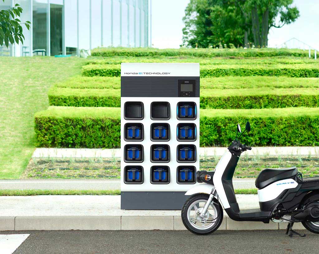 ホンダは、2050年にホンダの関わるすべての製品と企業活動を通じたカーボンニュートラルの実現を目指している。この目標の達成に欠かせないモビリティの電動化にあたっては、「短い航続距離、長い充電時間、高いバッテリーコスト」という3つの課題があった。そこでホンダはバッテリーを交換式とし、シェアリングすることでこれらの課題を解消し、電動化の加速と再生可能エネルギーの活用拡大に貢献するべく取り組んでいる。