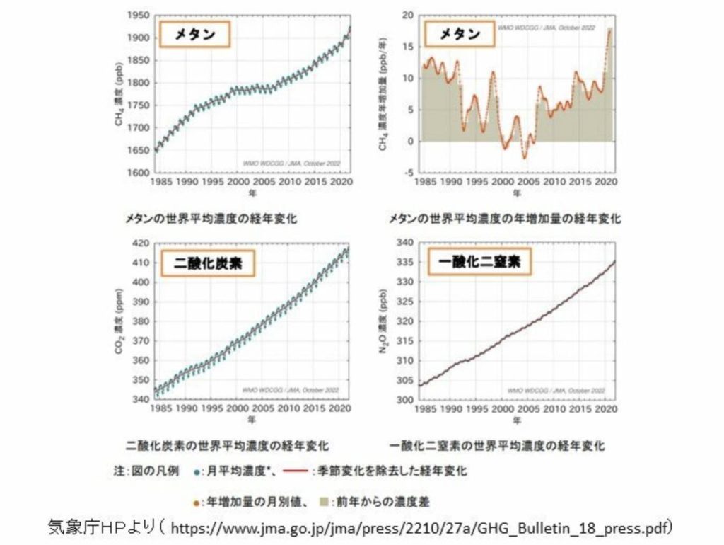 主要温室効果ガス 観測史上最高を更新 メタンの年増加量は観測史上最高