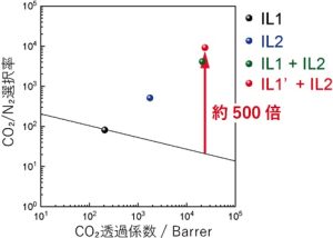 役割の異なる2種のイオン液体を混合し、高性能なCO2分離膜を開発