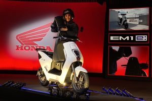 そのほか、EM1 e:では、フラットフロアを採用したコンパクトで滑らかなデザインによりホンダのスクーター・ラインアップの中でも個性的な存在に仕上げられています。