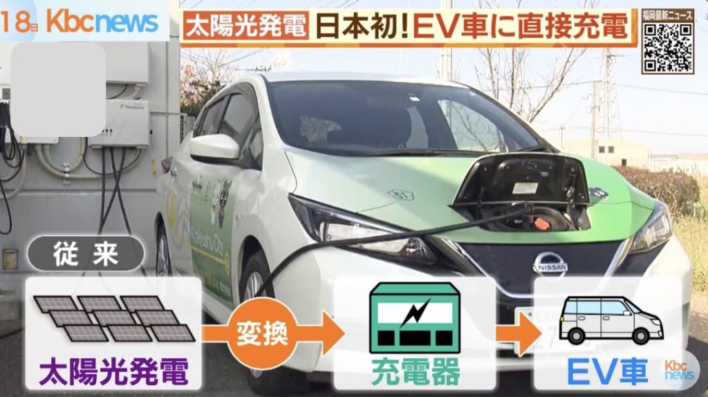 今回の実験では、太陽光発電から電気自動車に直接充電でき、しかも1度に最大4台対応可能という日本ではじめてとなる設備を使って、北九州市の公用電気自動車に直接充電を試みます。