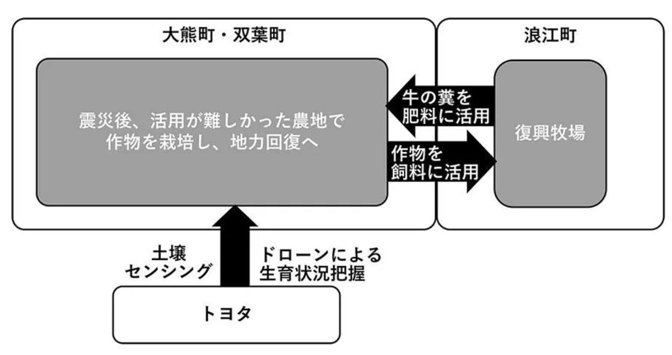 大熊町・双葉町・浪江町・トヨタは、震災からの復興に向け連携を深め、低炭素な循環型農業、肥料・飼料の地産地消による輸送時CO2削減などを通じて、カーボンニュートラルの実現に向けた取り組みを推進させていくとしている。