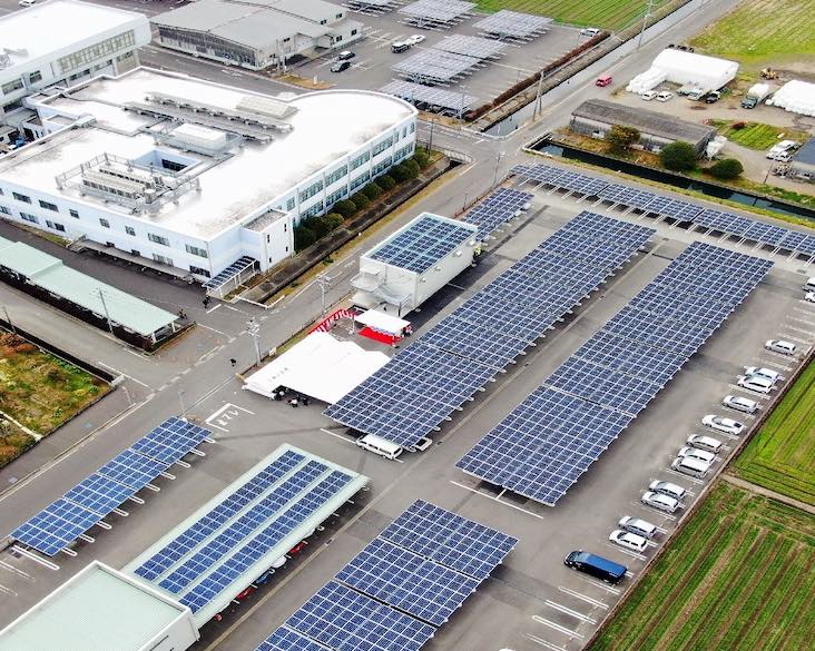 自治体庁舎の非常用電源に関する国の指針を受け、太陽光設備の導入に踏み切った。職員と来庁者用の駐車場の屋根に1200枚、総出力500キロワットの太陽光パネルを載せて発電し、庁舎の全電力をまかなう。余った電力は大型蓄電池にため、不測の事態に備える。国の補助などを受けても約2億4千万円の自己負担が生じたが、成果として年間361トンのCO2排出量の削減につながった。