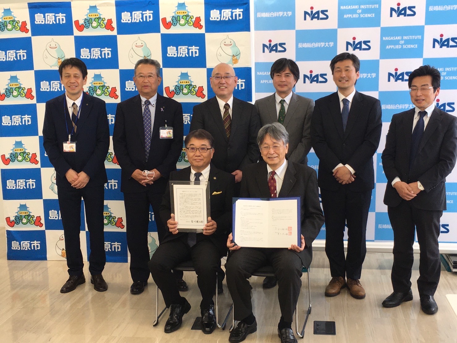 島原市と長崎総合科学大学との脱炭素社会構築等に関する連携協定調印式に続き