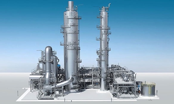 化学プラントや発電所の脱炭素化の手段として、排出されるCO2の回収が注目されている。三菱重工はこの分野のトップランナーだ。対象に付設する回収プラントや装置を手がけ、商用での排ガスからのCO2回収量の世界シェアは70%を超えるとのこと。