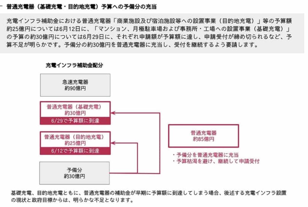 『4月からスタートした補助金ですが6月で基礎充電、目的地充電ともに予算額に到達』