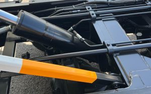 これは、新たに架装部を作り直すことなく従来の油圧機構を利用、ディーゼルエンジン由来の油圧機構ではなく、水素由来の電動モーターとすることでカーボンニュートラルエネルギーを利用した静かな架装構造を実現している。
