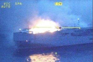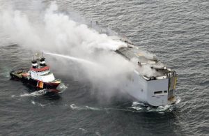 2023年7月26日未明、北海のオランダ沖で、3783台の車を積んだ自動車運搬船「フリーマントル・ハイウェイ」が火災を起こした。その中には498台のEVが含まれており、その1台から発火したと言われている。最初、船員が消火を試みたが成功せず、避難の途中に1人が死亡。残りの22人は30mの高さから海に飛び込んで救助された。