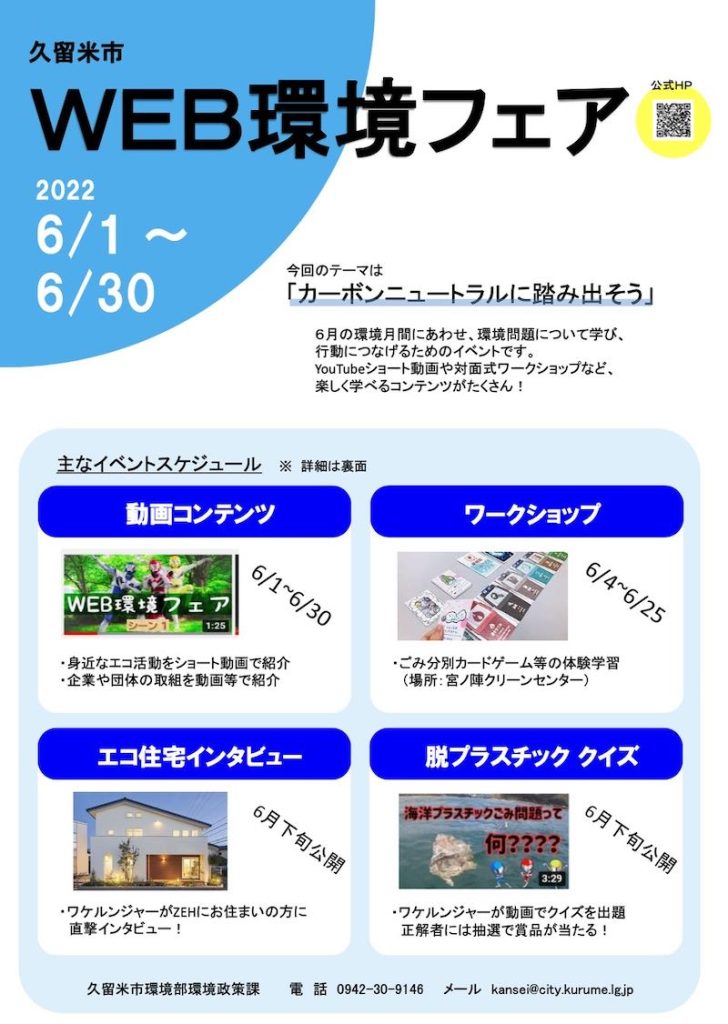 久留米市が令和4年6月1日(水)~令和4年6月30日(木)の期間、「WEB環境フェア」を開催します。