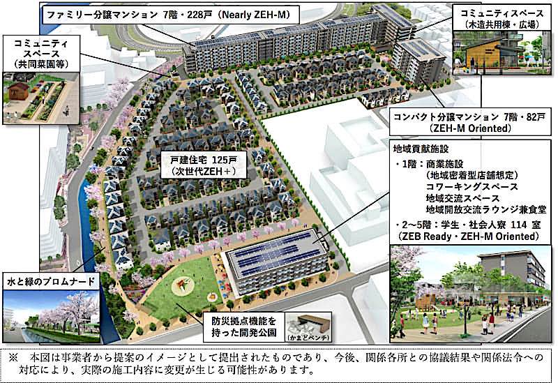 京都市は、伏見工業高等学校跡地および元南部配水管理課用地の活用に係る優先交渉事業者について、阪急阪神不動産を代表とする事業者とすることを発表。脱炭素仕様の住宅街区開発が進められる。