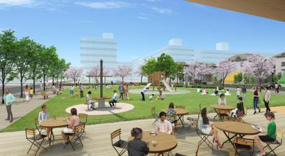 そのほか、開発公園と地域貢献施設が一体となった、地域住民やNPO、活動団体、企業等が共創できる場を創出する。加えて、屋内外に様々なコミュニティスペースを配置し、賑わいと交流を創出する。