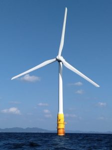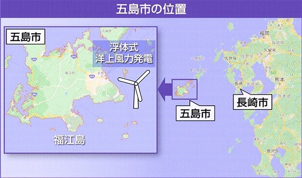 地域新電力設立のきっかけとなった浮体式洋上風力発電は13年、環境省の実証事業として戸田建設が五島列島の沖合に設置。実証終了後の16年、五島市と戸田建設子会社による商用運転が始まった。