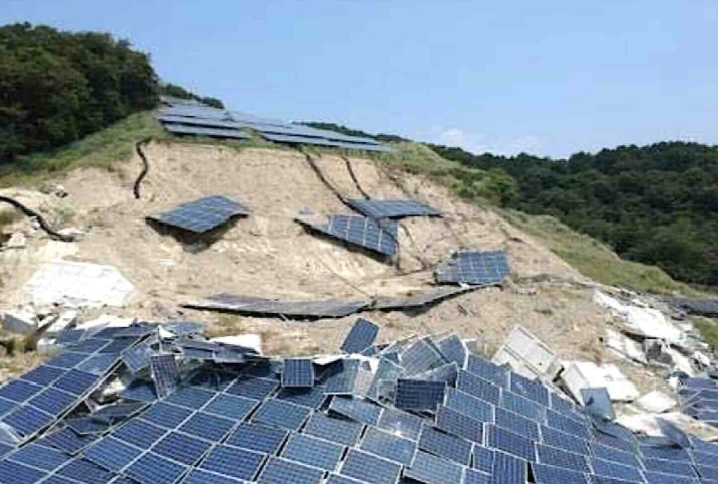 出力500キロ・ワットの施設の場合、敷設されたパネルの面積は計5000平方メートル程度になり、パネルが押し流されて住宅を破壊したり、道路を塞いだりするリスクがある。設置時に森林伐採や造成工事が行われていれば、災害発生の危険が高まっている可能性もある。