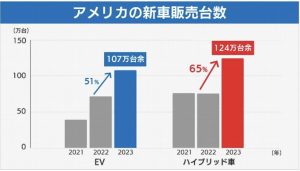 EV販売の不調の替わりにハイブリッド車(HV)の販売が好調のようです。