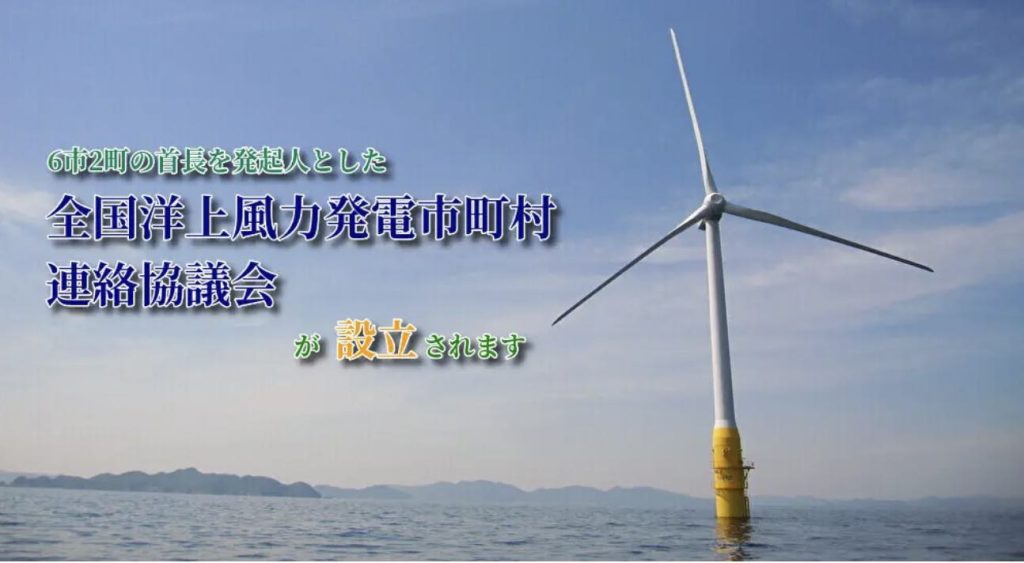 再エネ海域利用法に基づく促進区域に指定された五島市を含む6市2町の首長を発起人とした全国洋上風力発電市町村連絡協議会が設立されます。