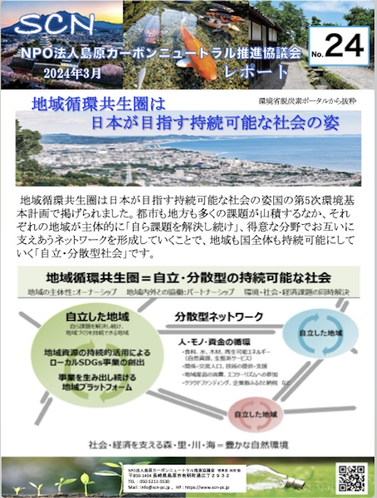 2024年3月、我々島原カーボンニュートラル推進協議会が発行する「月次レポート」も24号となり、丸2年目を迎えました。国や自治体の方針や各地の活動などをレポートしてきましたが、半年前あたりから急速に翳りを見せてきたEV(電気自動車)販売やCOP28での論調の変化などから、世の中の脱炭素やカーボンニュートラルへの取り組みに迷いや停滞が見られるようになってきているように感じています。太陽光発電や風力発電の自然エネルギーの不安定さやEV(電気自動車)の問題点などが一気に表面化し、脱炭素やカーボンニュートラルを実現する為に国や自治体、企業や個人が何をすればいいのかが明確にならず、混沌とした状態になってしまっていると感じています。 ネットから収集しておりましたカーボンニュートラル関連の最新情報や話題もここ数ヶ月かなり少なくなっており、毎月発行していたこの「月次レポート」を一旦中断し、情報や話題が揃った毎に不定期で発行する形式に変更させていただきます。それから脱炭素やカーボンニュートラルへの意味や意識付けを含め、我々の活動がほとんど理解されていない現状から、本年度は活動をコンテストやセミナー中心の普及・啓蒙活動を中心に行いたいと思います。 |